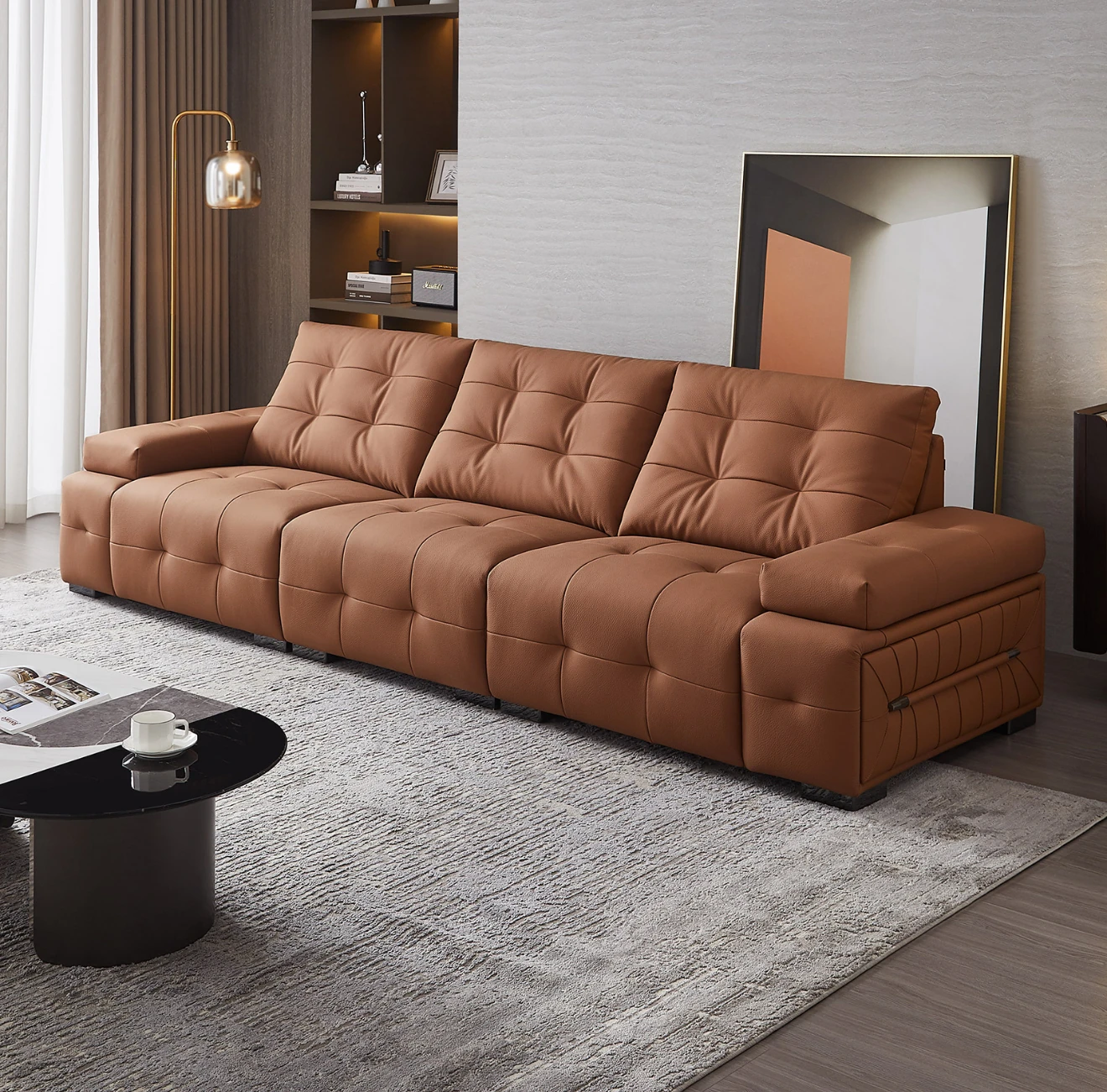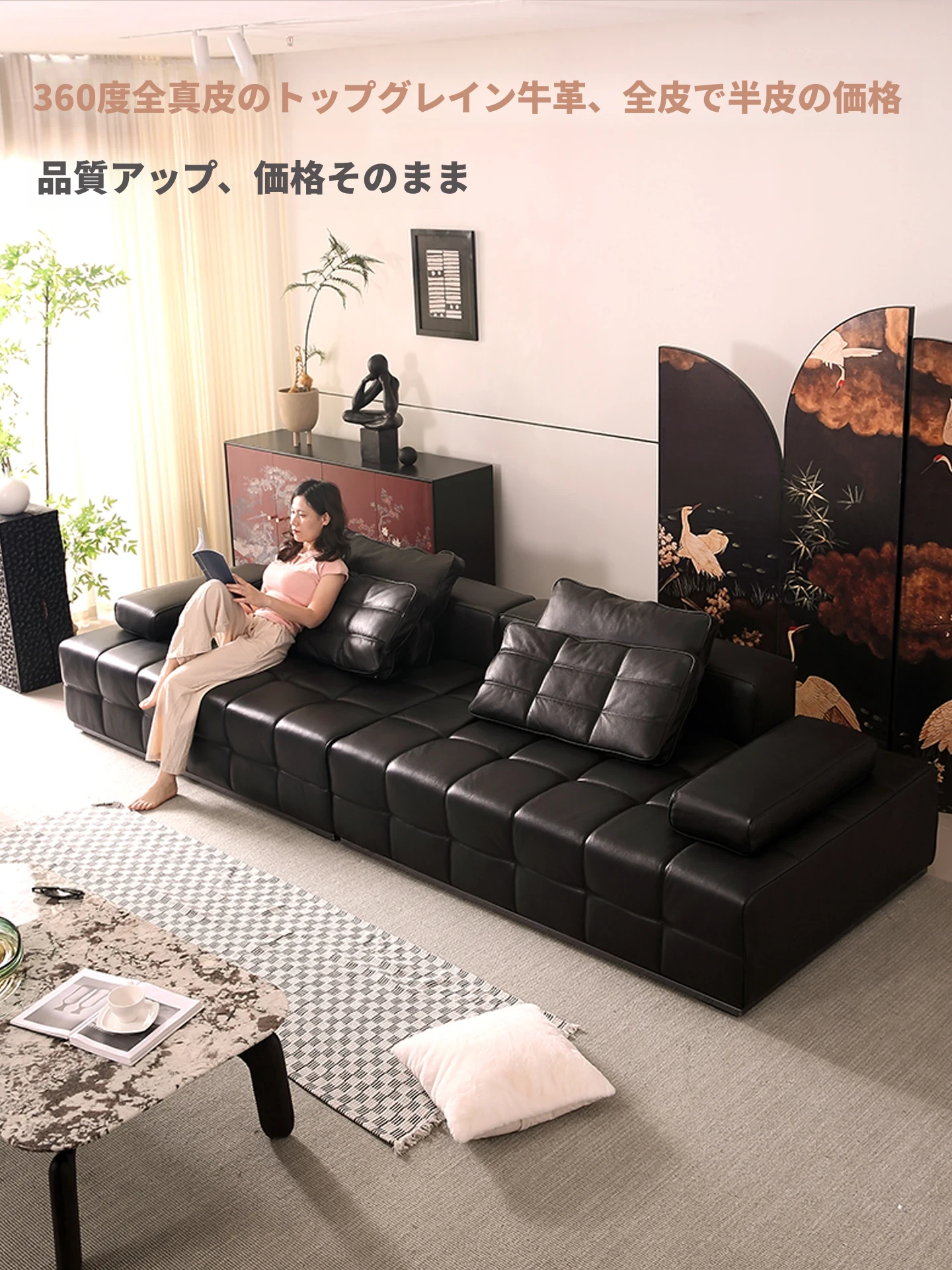 イタリアンラグジュアリー本革ソファ|広々としたリビングや別荘に最適なハイエンド家具|一級牛革使用のモダン&シンプルデザイン