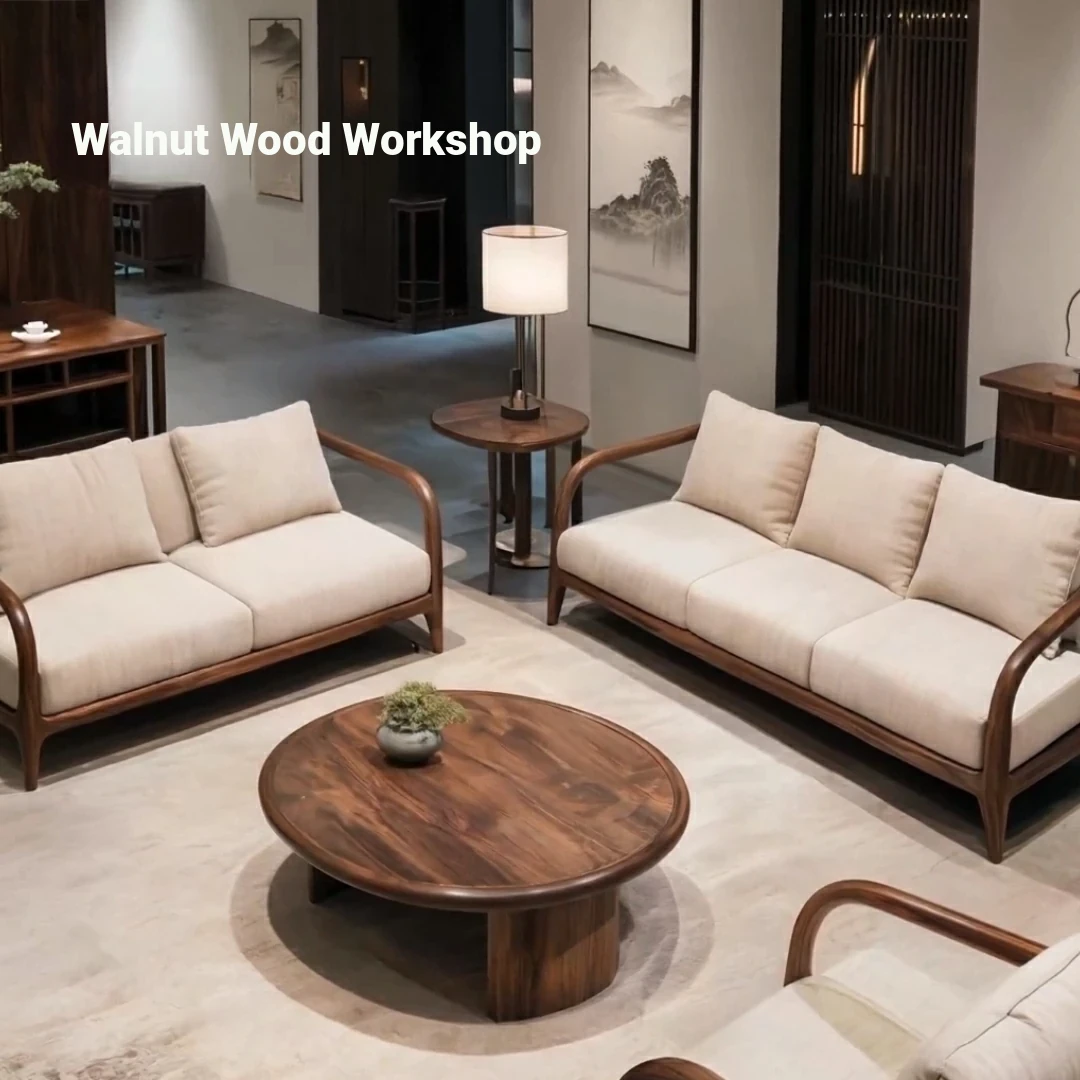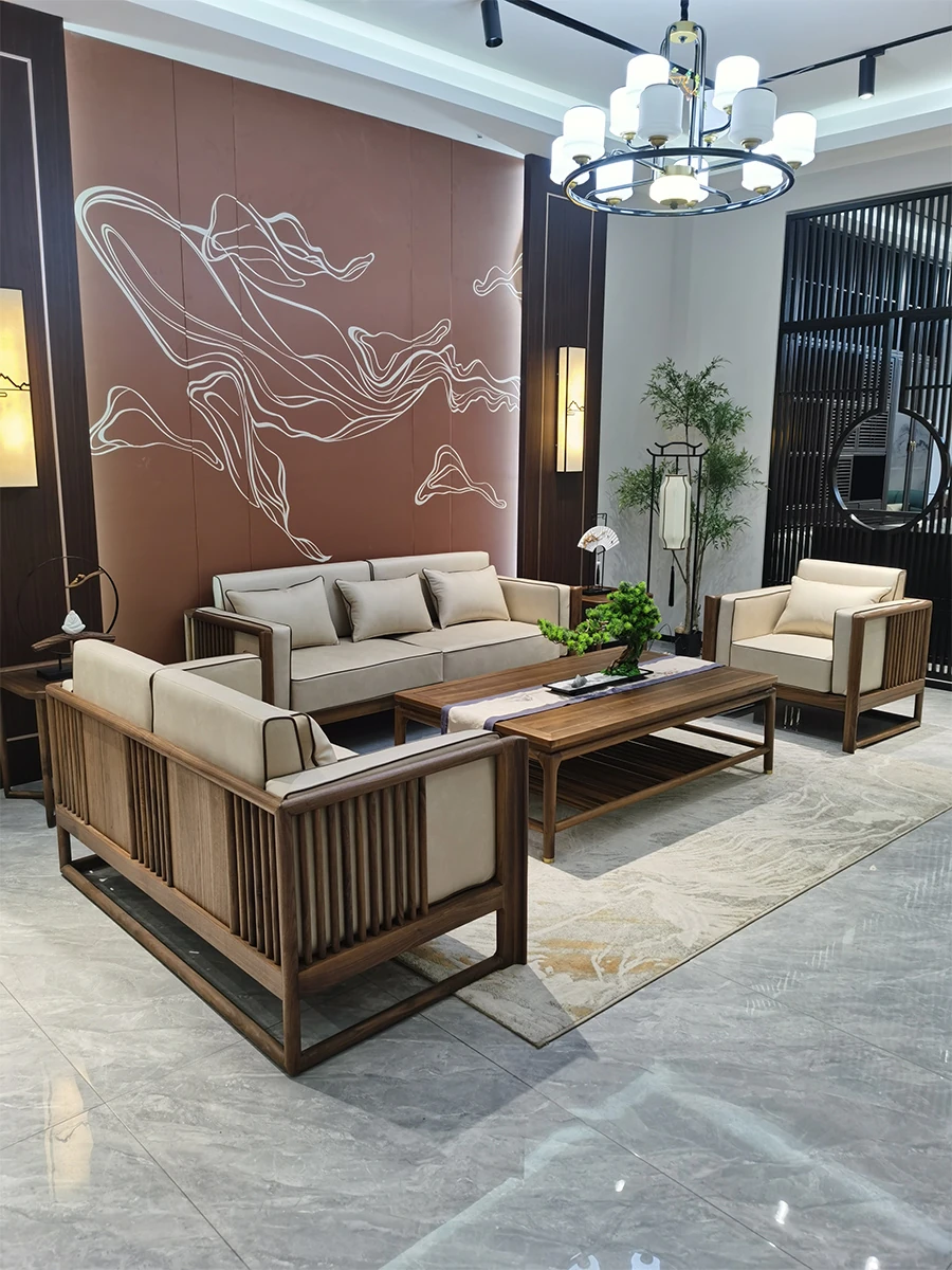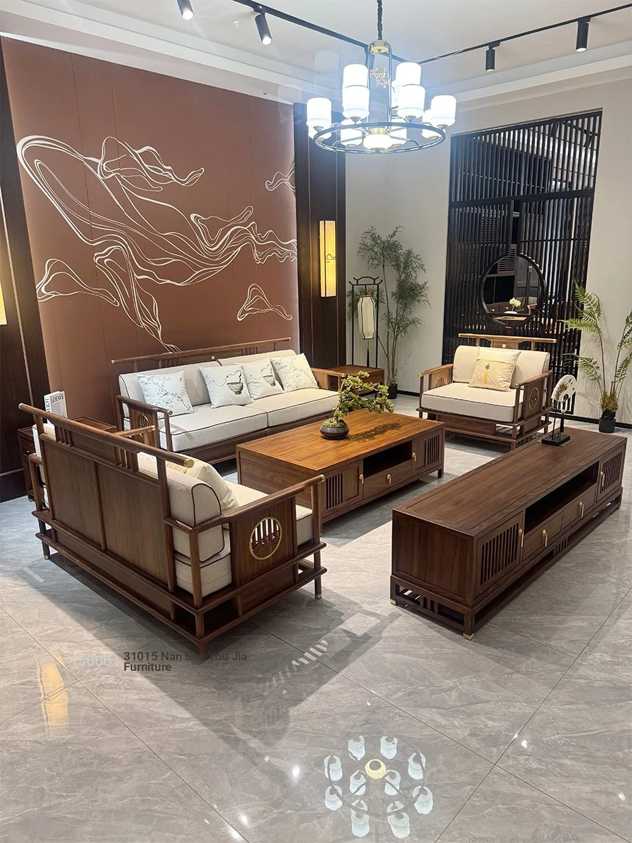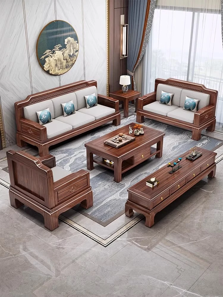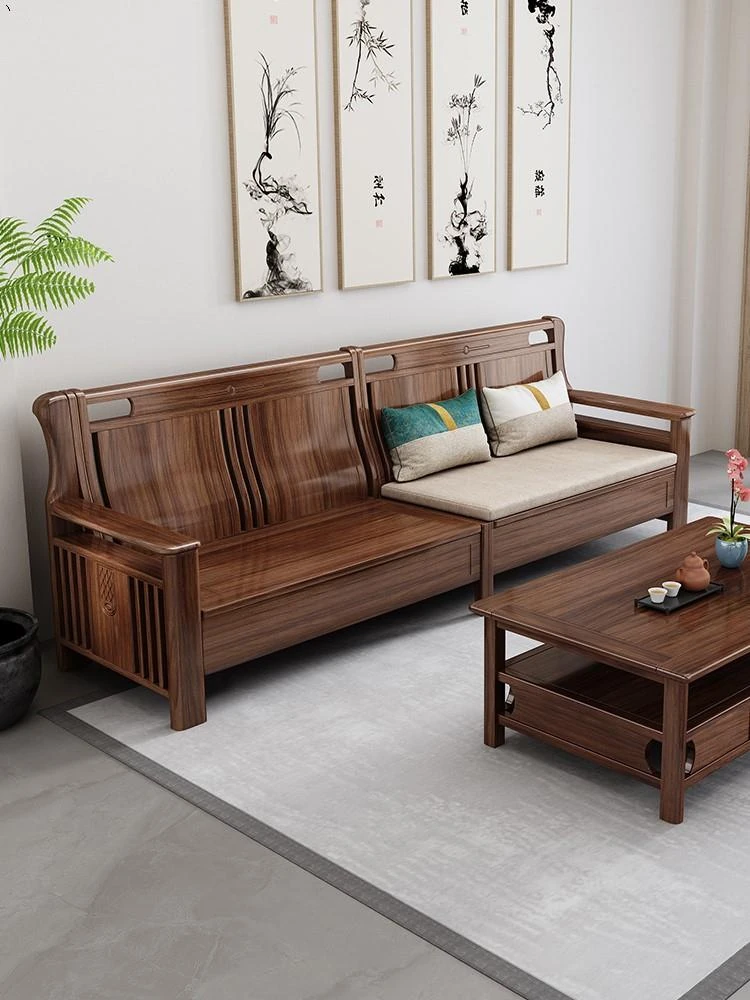 Modern Chinese-Style Solid North American Black Walnut Sofa Set - Aesthetic Furniture for Small Urban Living Rooms with Rustic Charm