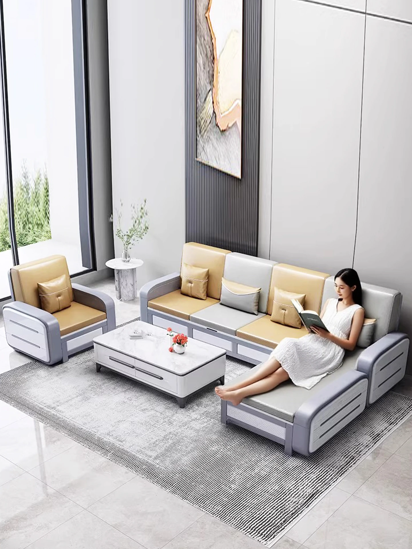 2025 New Arrival Genuine Leather Sofa for Living Room - Modern Minimalist Three-Seat Sofa in Luxurious Top-Grain Cowhide, Perfect for Home Use