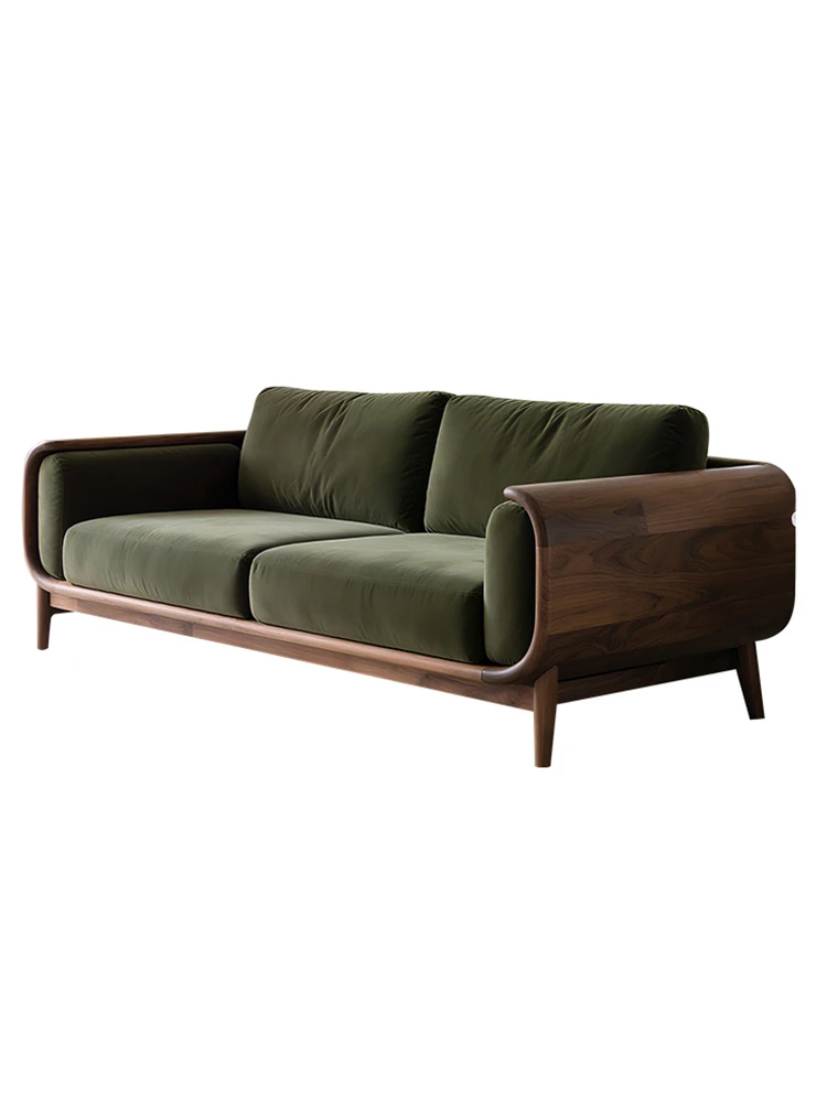 New Chinese Style North American Black Walnut High-End Minimalist Straight Sofa for Three - Perfect for Small Homes, 2025 New Model