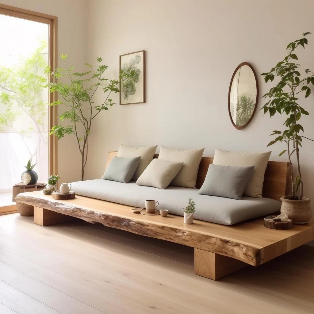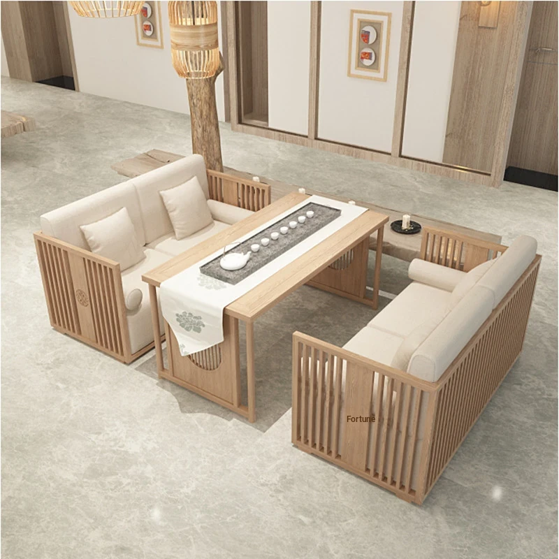 Modern Chinese Style Solid Wood Sofa Set - Minimalist Natural Wood Color Furniture for Hotels, Guesthouses, and Tea Houses with Cozy Booth Seating for Welcoming Guests
