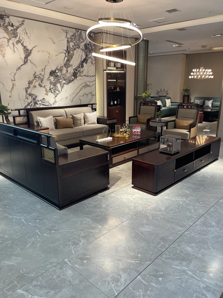 Elegant New Chinese Style Solid Wood Sofa for Spacious Living Rooms - High-End Zen Design in Black Walnut for Villas and Luxury Homes