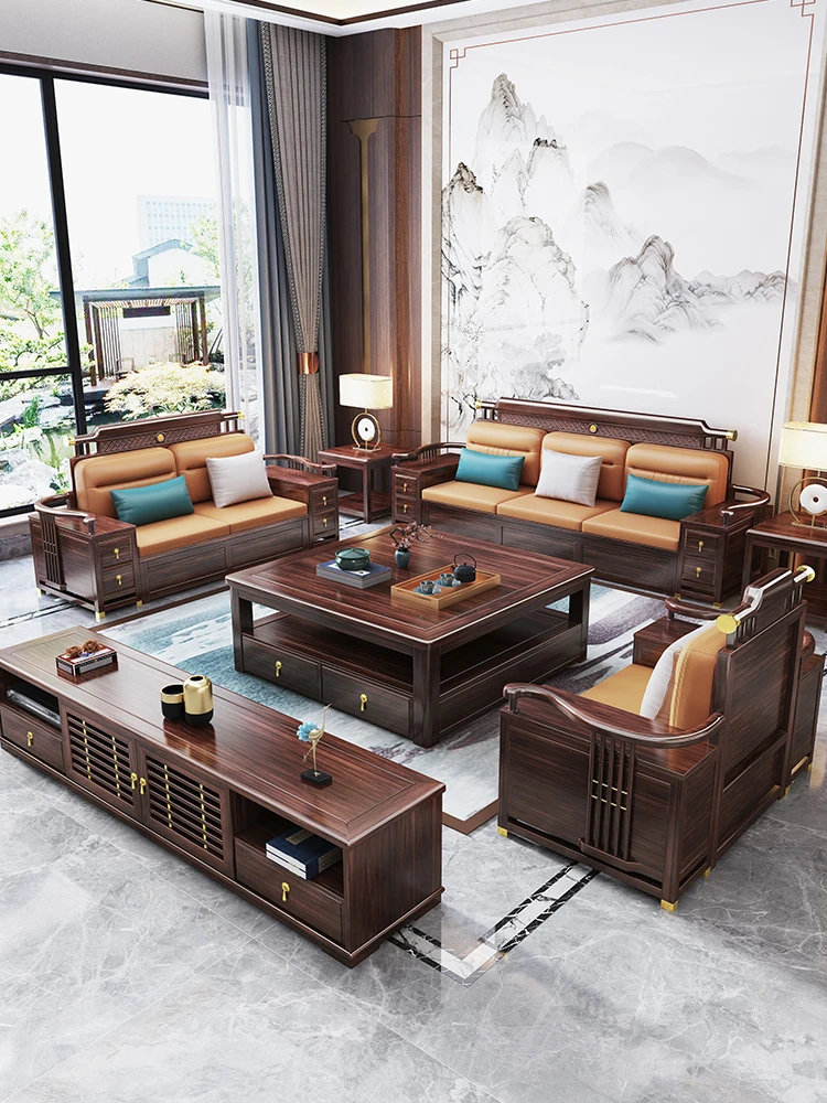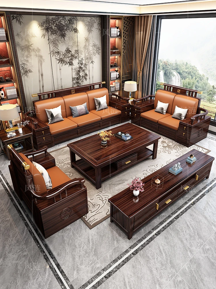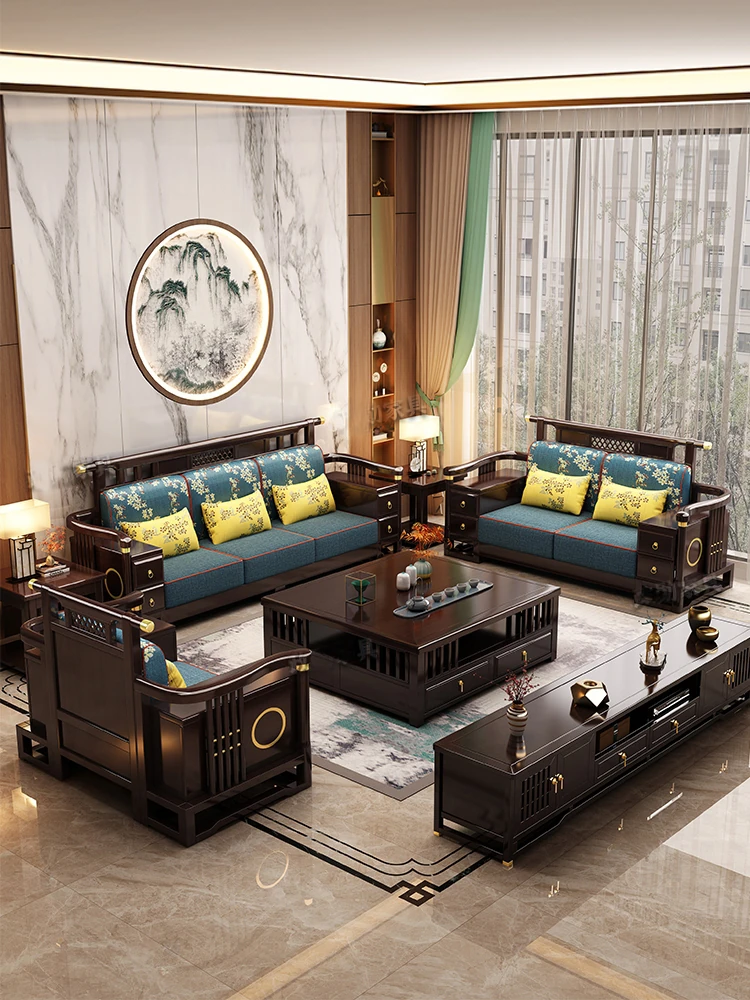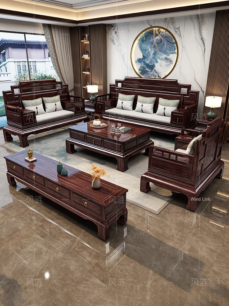 New Chinese Style Solid Blackwood Sofa - High-End Zen Storage Furniture for Luxurious Living Rooms and Villas, Embrace Elegance with a Touch of Tradition.