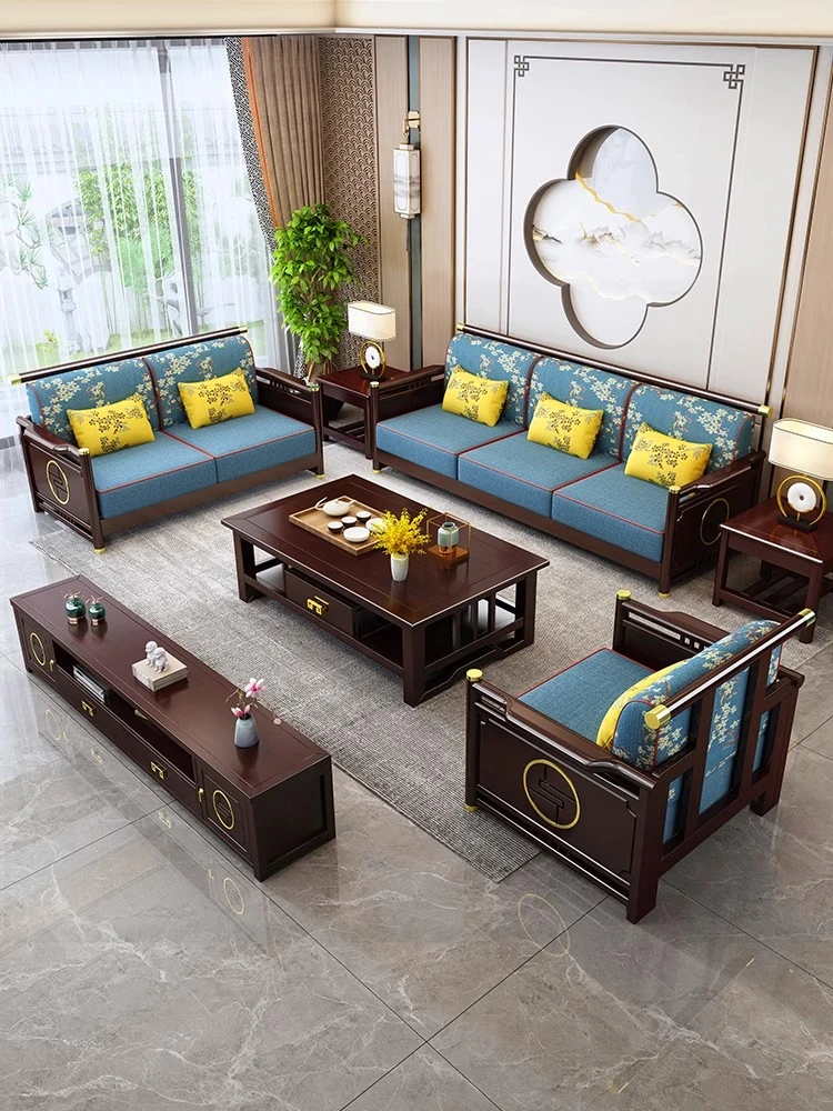 Modern Chinese Style Solid Wood Sofa Set - Versatile for All Seasons, Perfect for Small and Large Spaces - Elegant Chinese-Inspired Living Room Furniture Suite