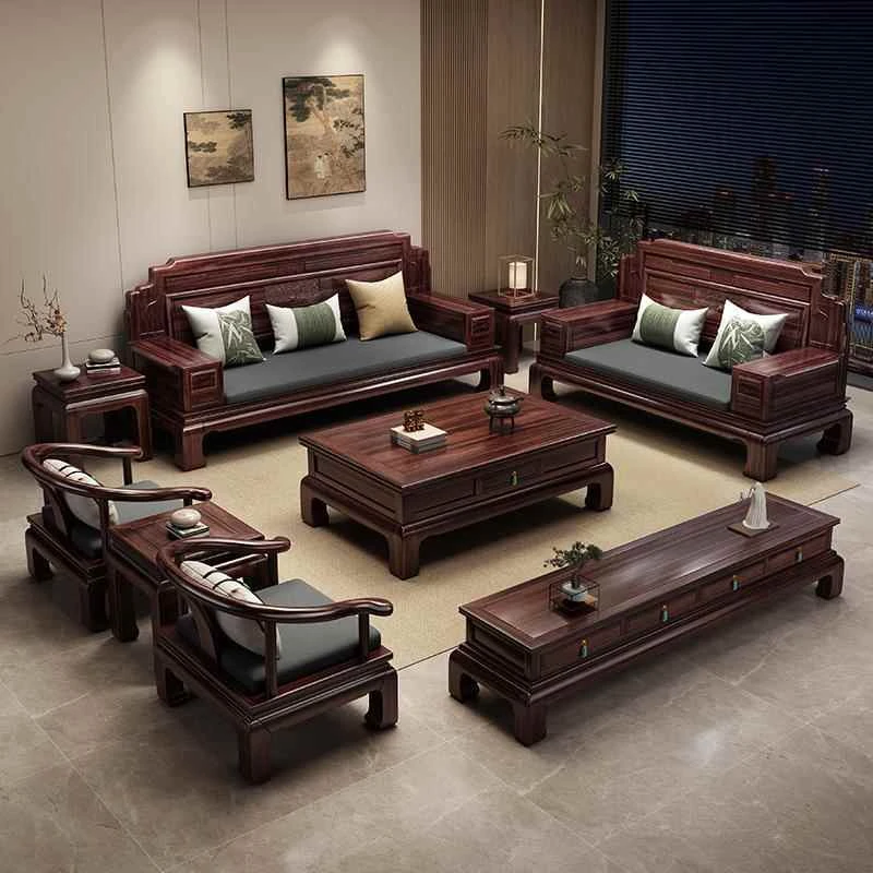 Classic New Chinese Style Rosewood Solid Wood Sofa Set - Versatile for Winter and Summer, Ideal for Villas and Compact Living Rooms, Timeless Antique Design