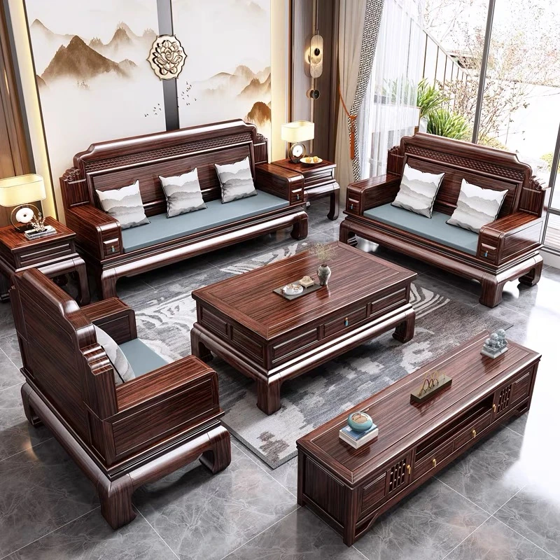 Elegant New Chinese Style Solid Blackwood Sofa Set – Versatile for All Seasons, Perfect for Any Living Space. Ideal for Villas and High-End Interiors.