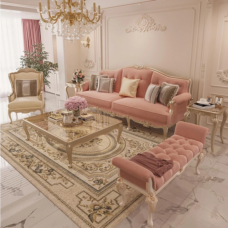 French Chic Luxury Solid Wood Sofa for Living Room - Elegant Villa High-End Carved Upholstered Three-Seat Sofa in Cream Color Fabric